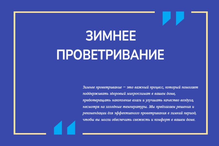 Зимнее проветривание – это важный процесс, который помогает поддерживать здоровый микроклимат в вашем доме, предотвращать накопление влаги и улучшать качество воздуха, несмотря на холодные температуры. Мы предлагаем решения и рекомендации для эффективного проветривания в зимний период, чтобы вы могли обеспечить свежесть и комфорт в вашем доме.